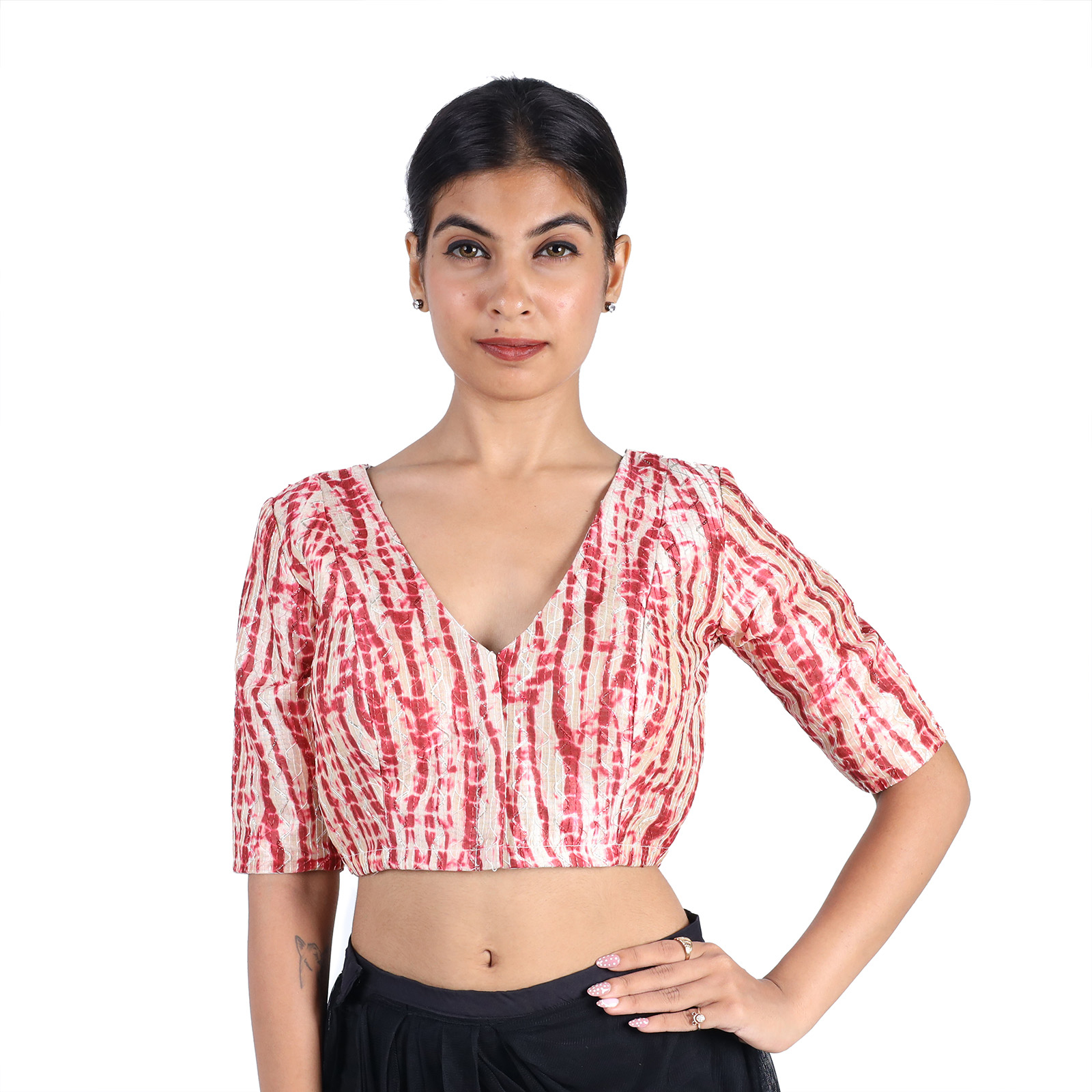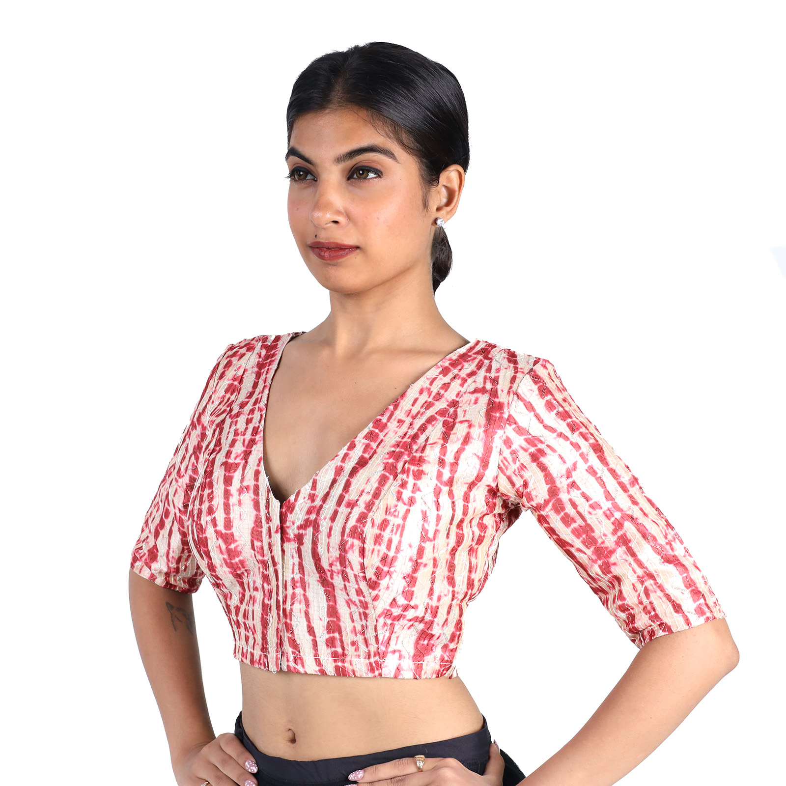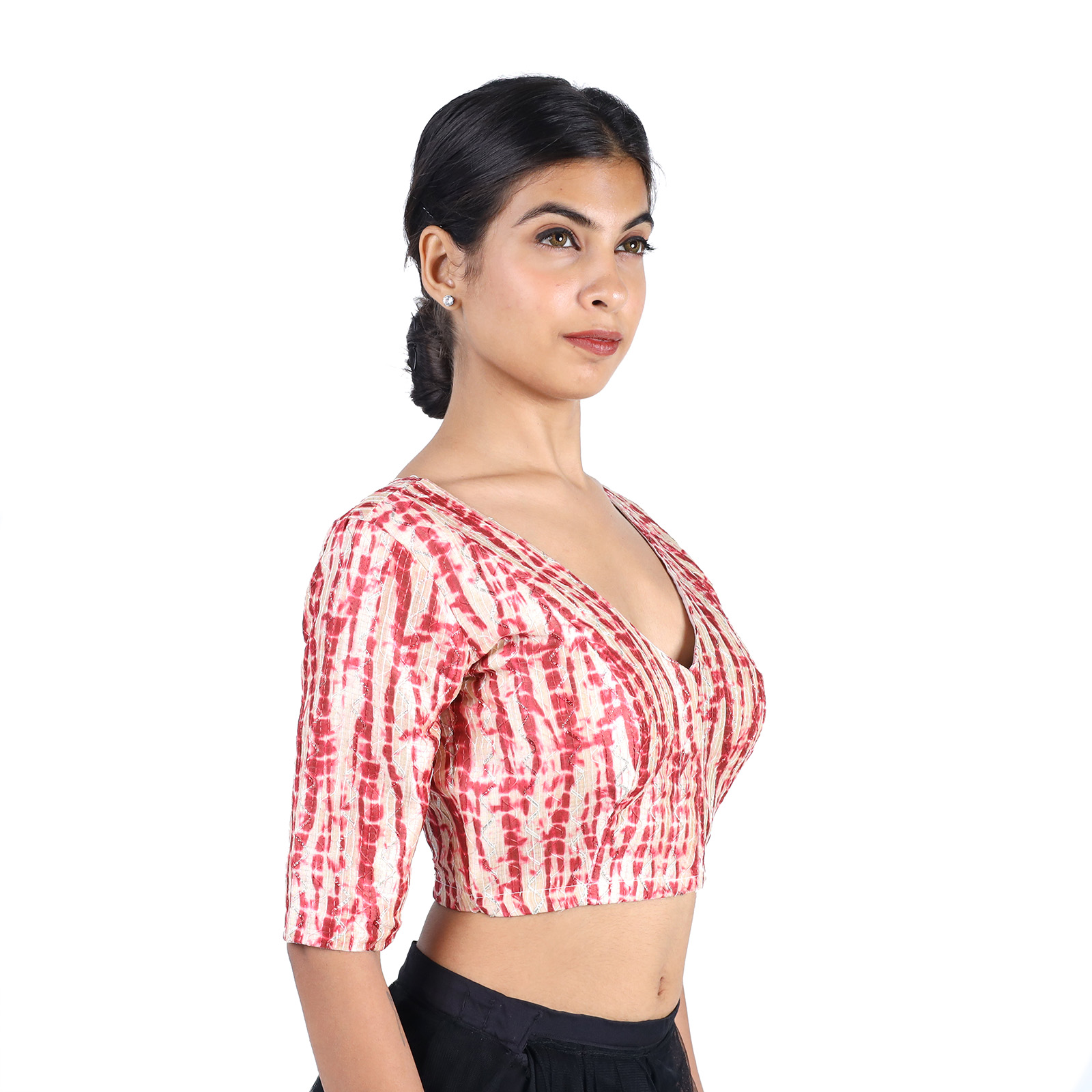 Art Silk Maroon Tie-Dye V-Neck Saree Blouse for Women