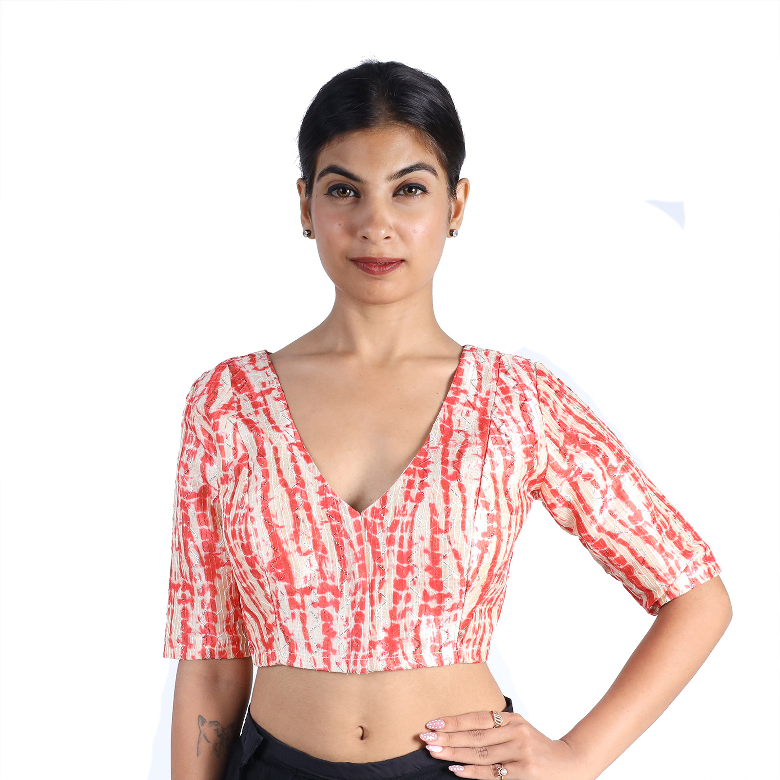 Elevate your ethnic style with this Art Silk Red Tie-Dye Printed V-Neck Saree Blouse for Women.Ā Made from art silk with cotton lining, this non-padded blouse offers comfort, elegance, and a perfect festive look. Designed by India Blouse, it pairs beautifully with sarees, lehengas, and party wear outfits.