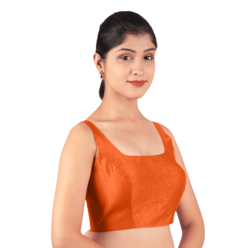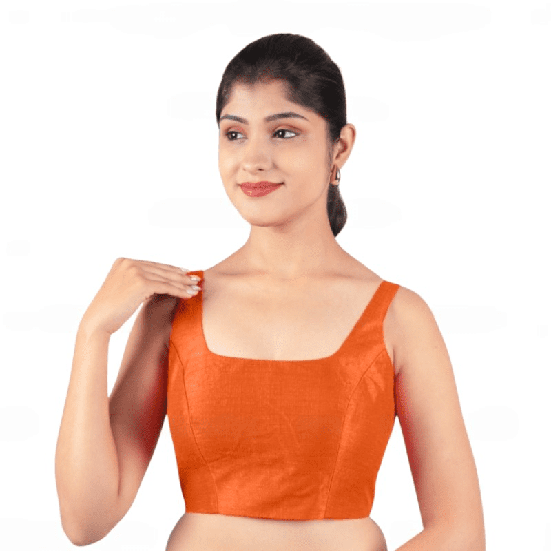 Brighten up your ethnic style with this Bangalori Silk Orange Sleeveless Padded Saree Blouse.Ā Crafted in premium silk fabric with a U-neckline and a secure back hook closure, itās the perfect match for festive sarees, weddings, and parties.