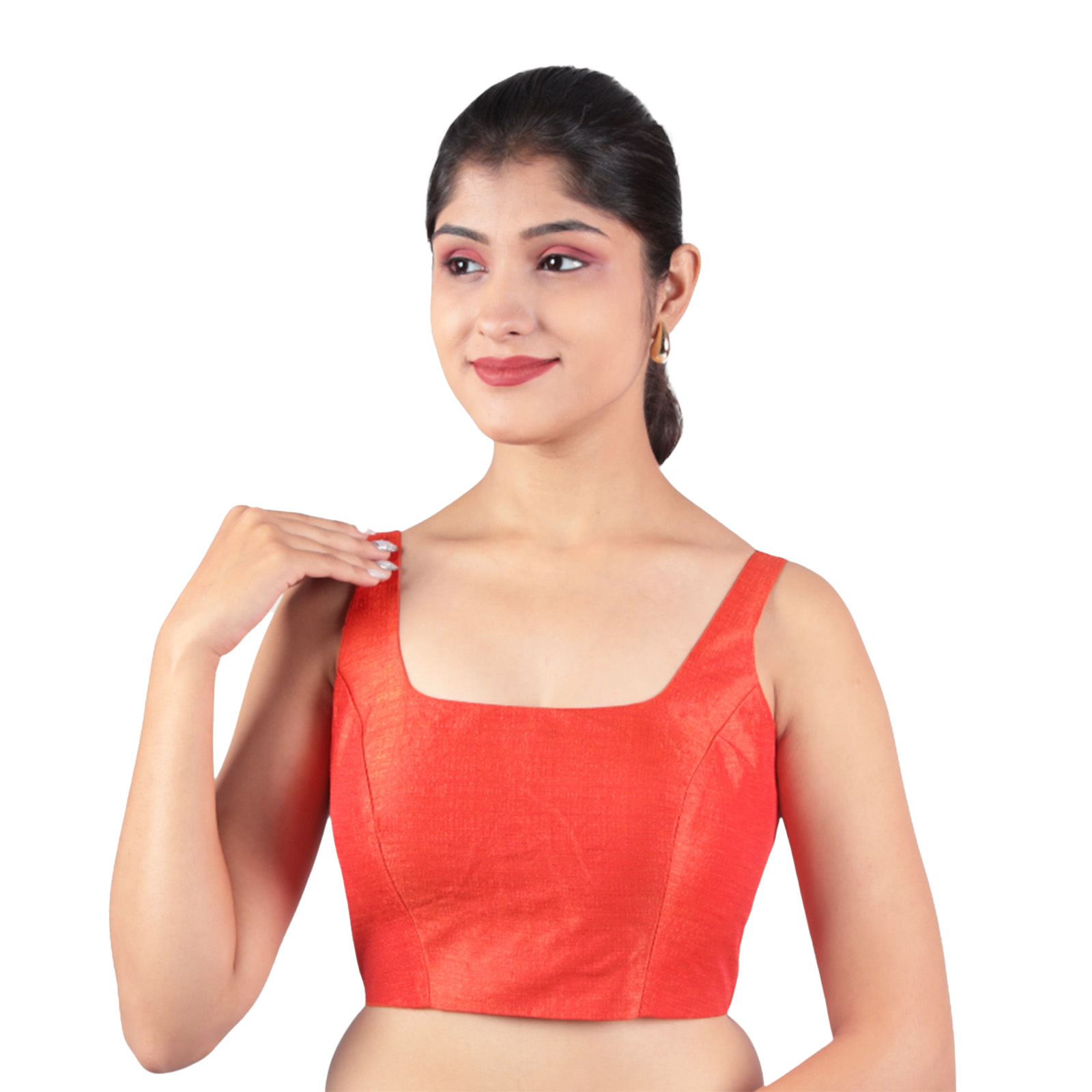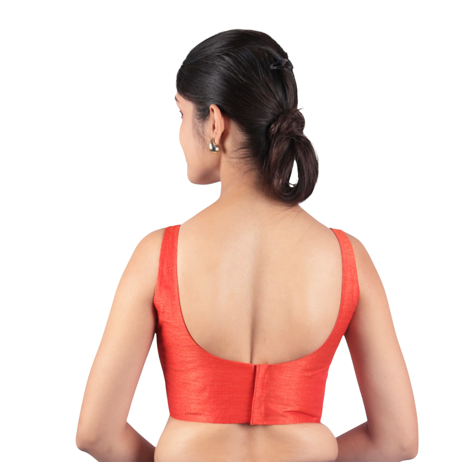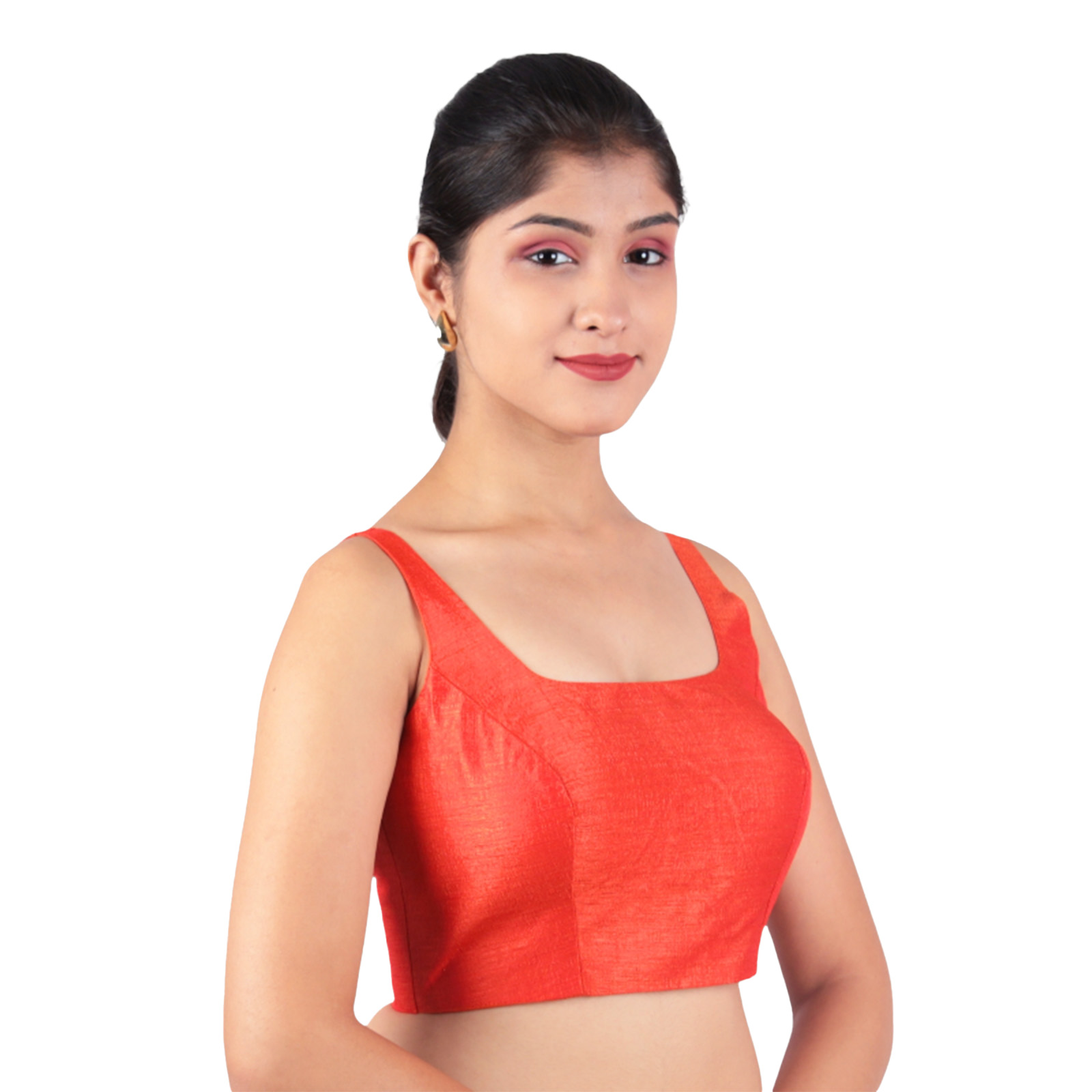 Add timeless elegance to your ethnic wear collection with the Bangalori Silk Red Sleeveless Padded Saree Blouse by India Blouse. Made from premium Bangalori silk with cotton lining, this Bangalori Silk Red Sleeveless Padded Saree Blouse offers both comfort and a rich, smooth finish. The padded fit ensures a flattering silhouette, while the sleeveless design adds a modern touch. The U-neckline highlights your saree drape beautifully, and the back hook-and-eye closure provides convenience with a snug fit. The vibrant red shade makes it versatile enough to pair with contrasting sarees in black, cream, gold, or green, making it an ideal pick for weddings, festive events, parties, and receptions.