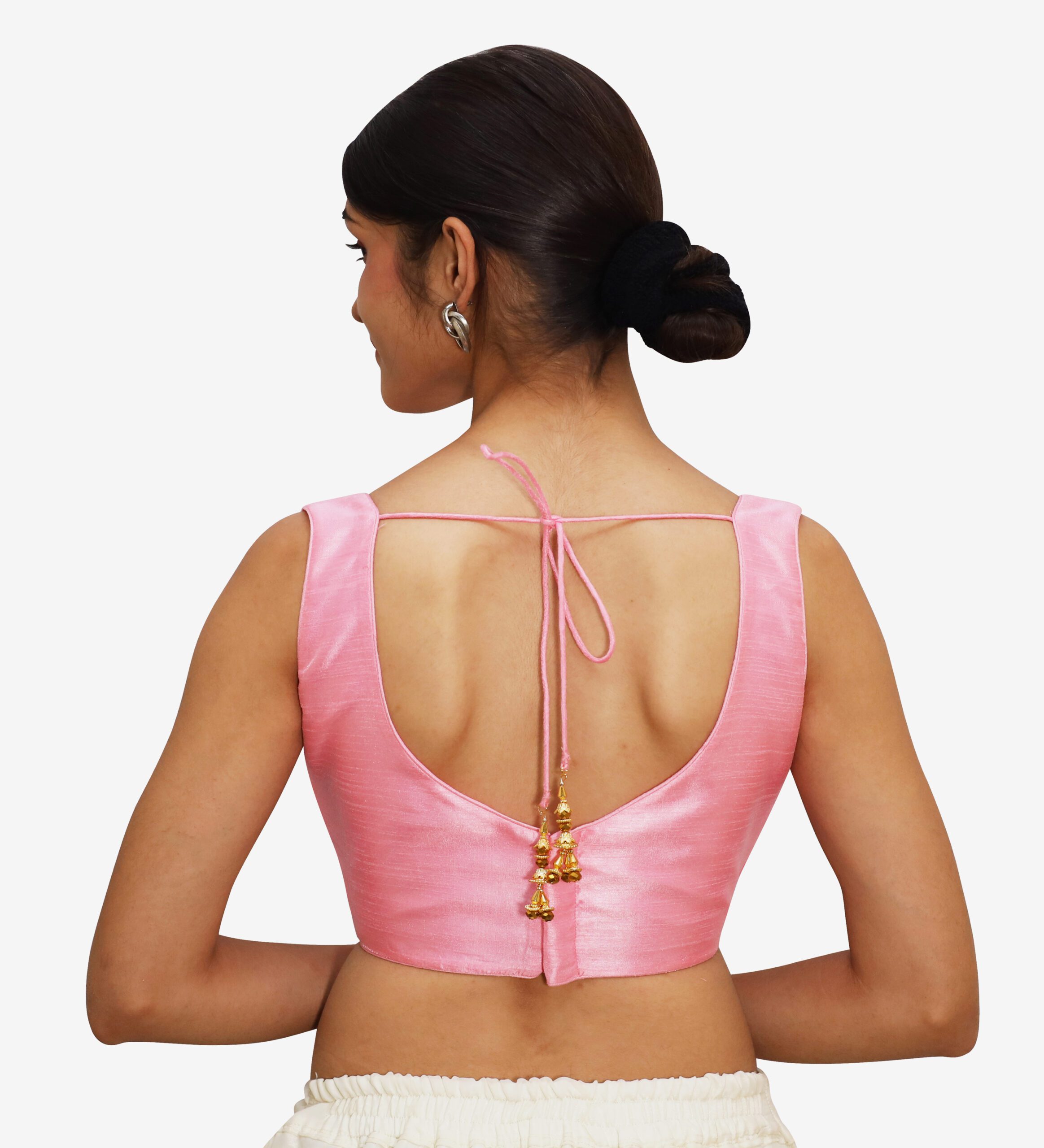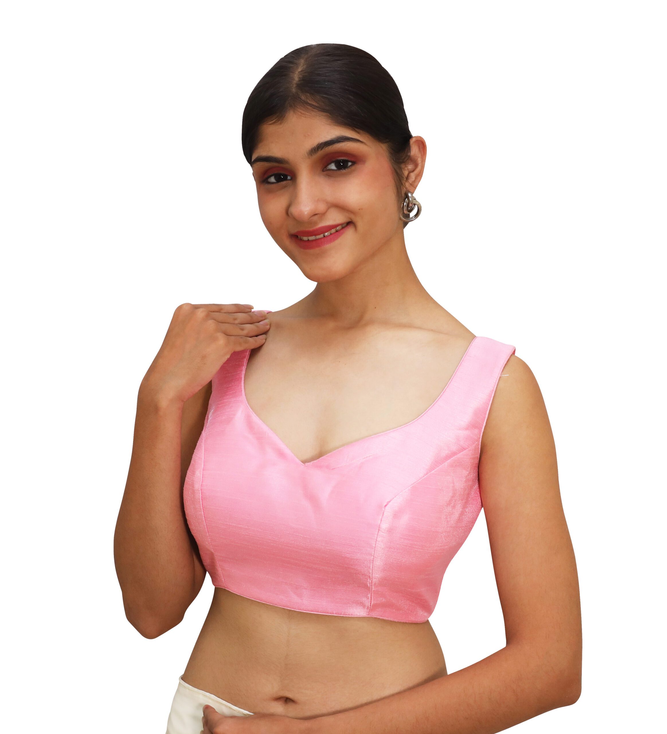 Add a pop of elegance and charm to your ethnic collection with the pink sleeveless sweetheart blouse for women from India Blouse. This pink sleeveless sweetheart blouse, made from premium Bangalori silk and soft crepe lining, this blouse offers both style and comfort. The sweetheart-neckline Blouses enhance your saree drape beautifully, while the sleeveless design lends a modern and graceful appeal. With padded detailing for a structured fit and a back hook-and-eye closure, this pink sleeveless sweetheart blouse versatile blouse that pairs effortlessly with silk, georgette, chiffon, or net sarees. A must-have for women who love to blend traditional beauty with a modern twist.