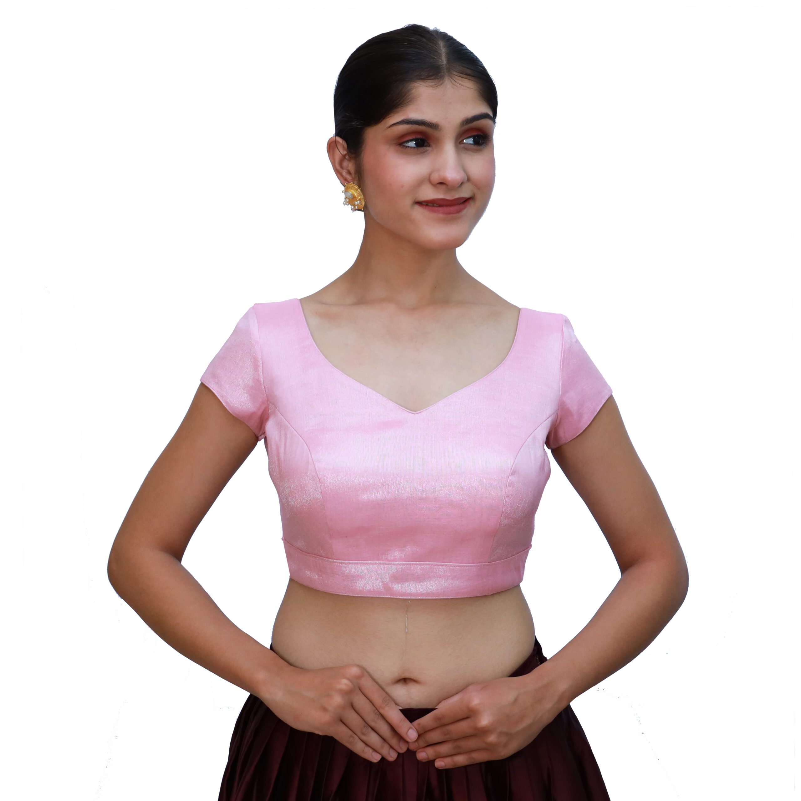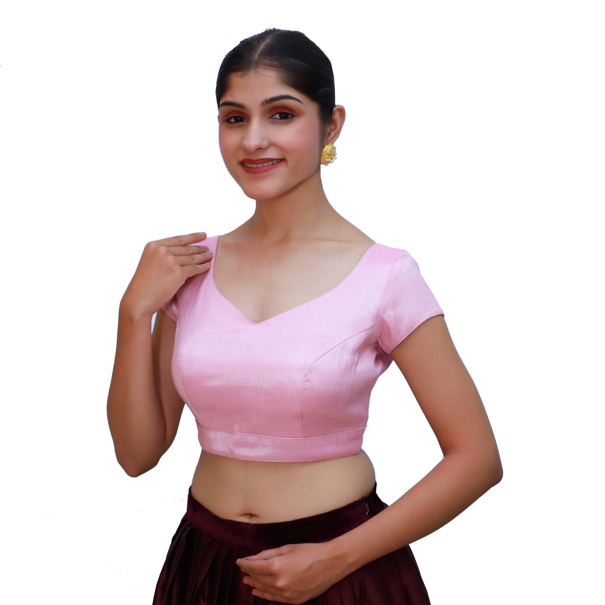 Add a graceful charm to your ethnic wardrobe with the Pink Sweetheart Neck Blouse by India Blouse. This stylish pink sweetheart neck blouse for women is crafted from premium tissue fabric and features a soft cotton lining for all-day comfort and a beautiful shine. The flattering sweetheart neckline highlights your feminine elegance, while chic cap sleeves give this designer blouse a timeless and modern appeal.