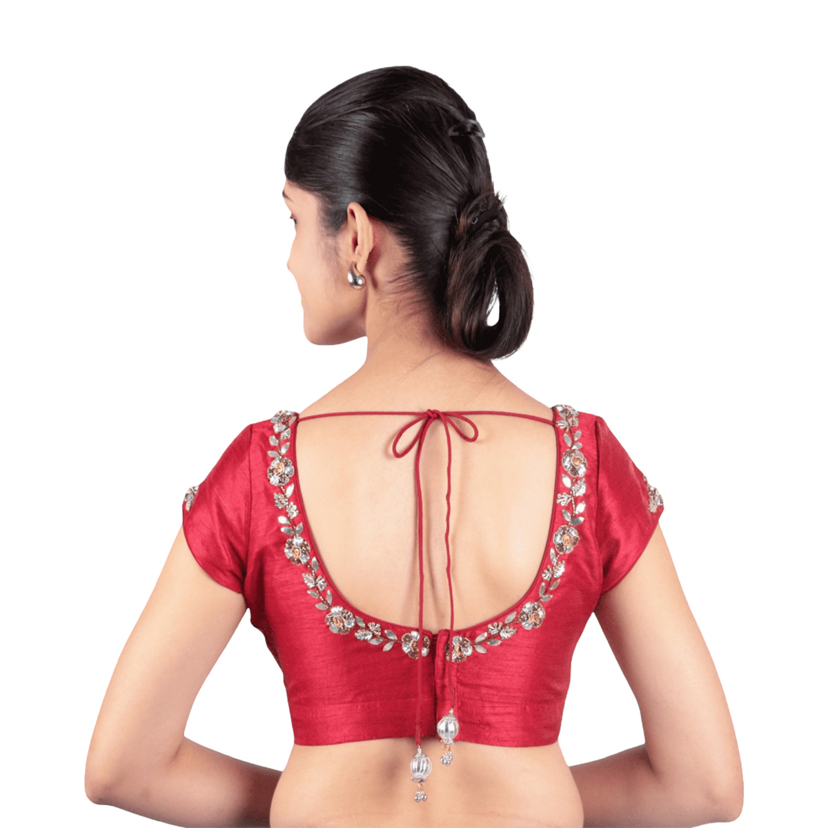 This Silk Maroon Sweetheart Neck Embroidered Blouse Designed as a readymade blouse with a back hook-and-eye closure, it is easy to wear and perfect for special occasions. The deep maroon color makes it versatile enough to pair with silk, chiffon, or embroidered sarees. Ideal for weddings, parties, and cultural celebrations, this blouse will be a timeless addition to your collection.