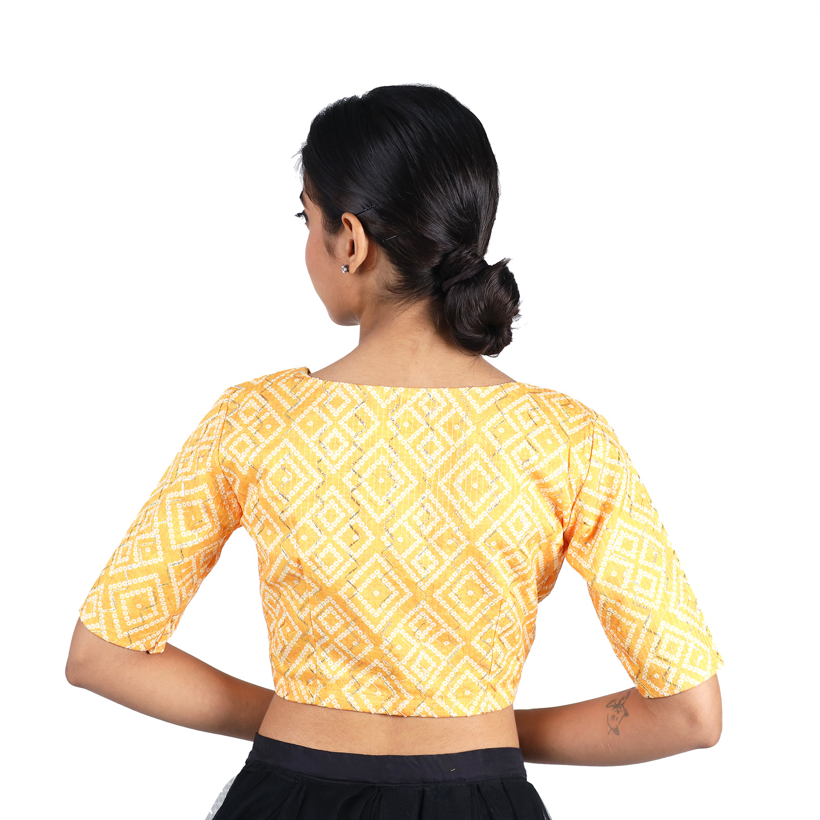 Silk Yellow Bandhani Printed V-Neck Saree Blouse