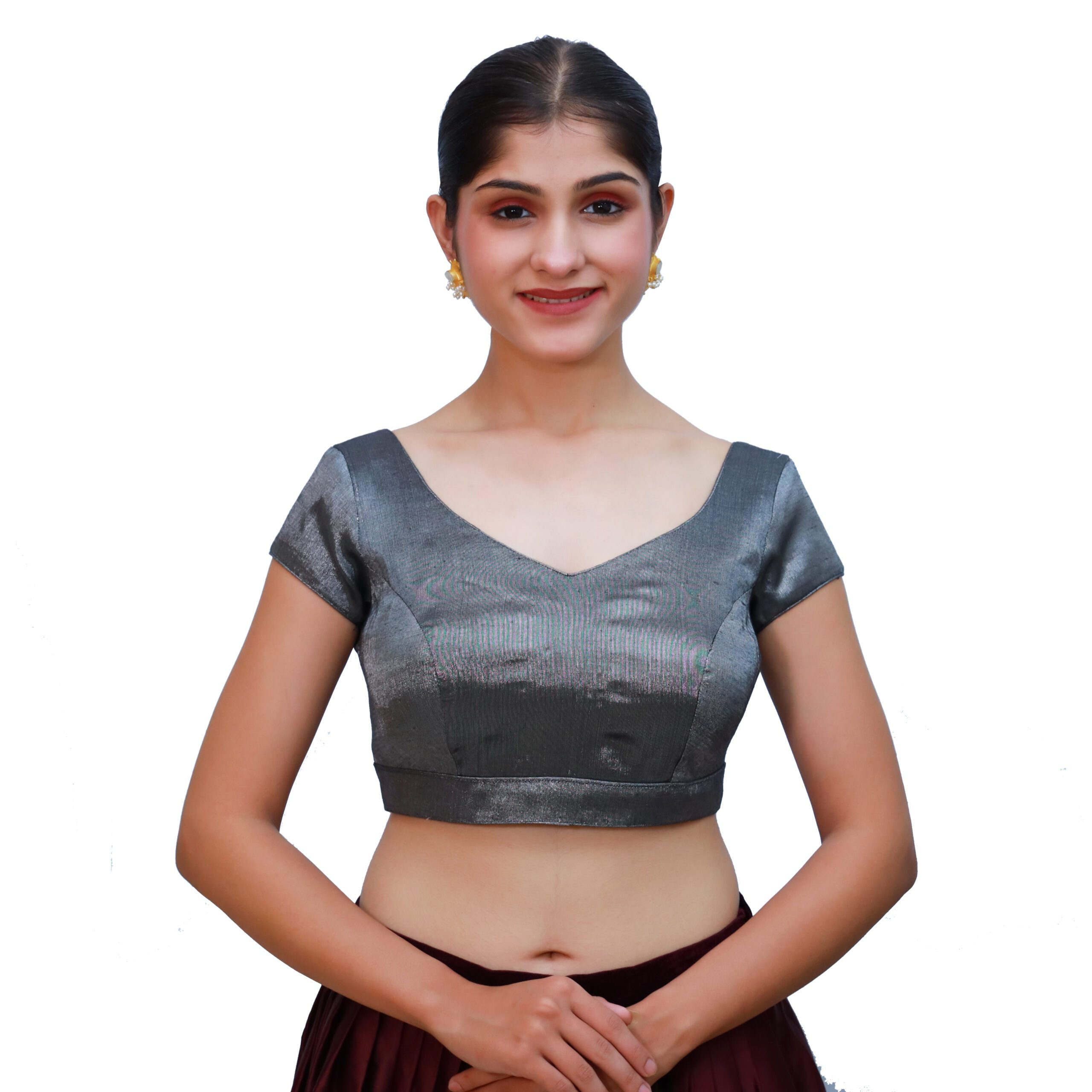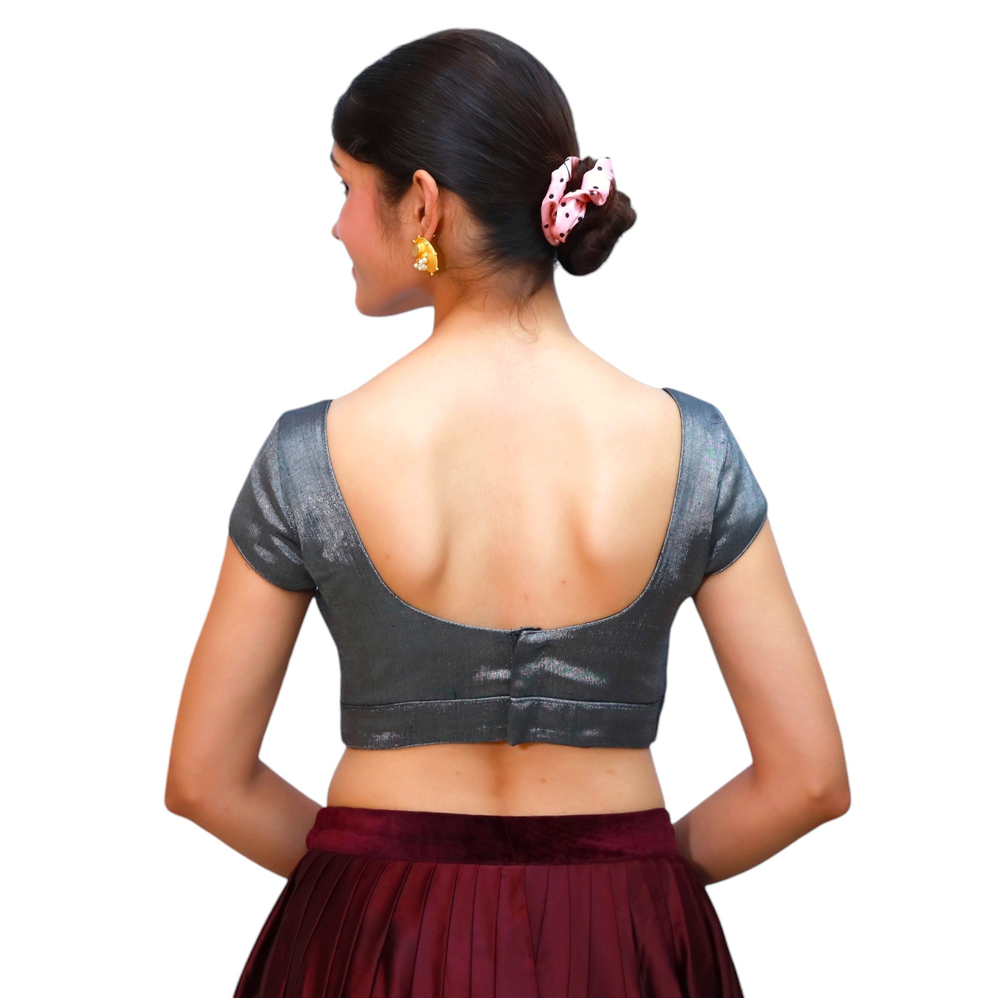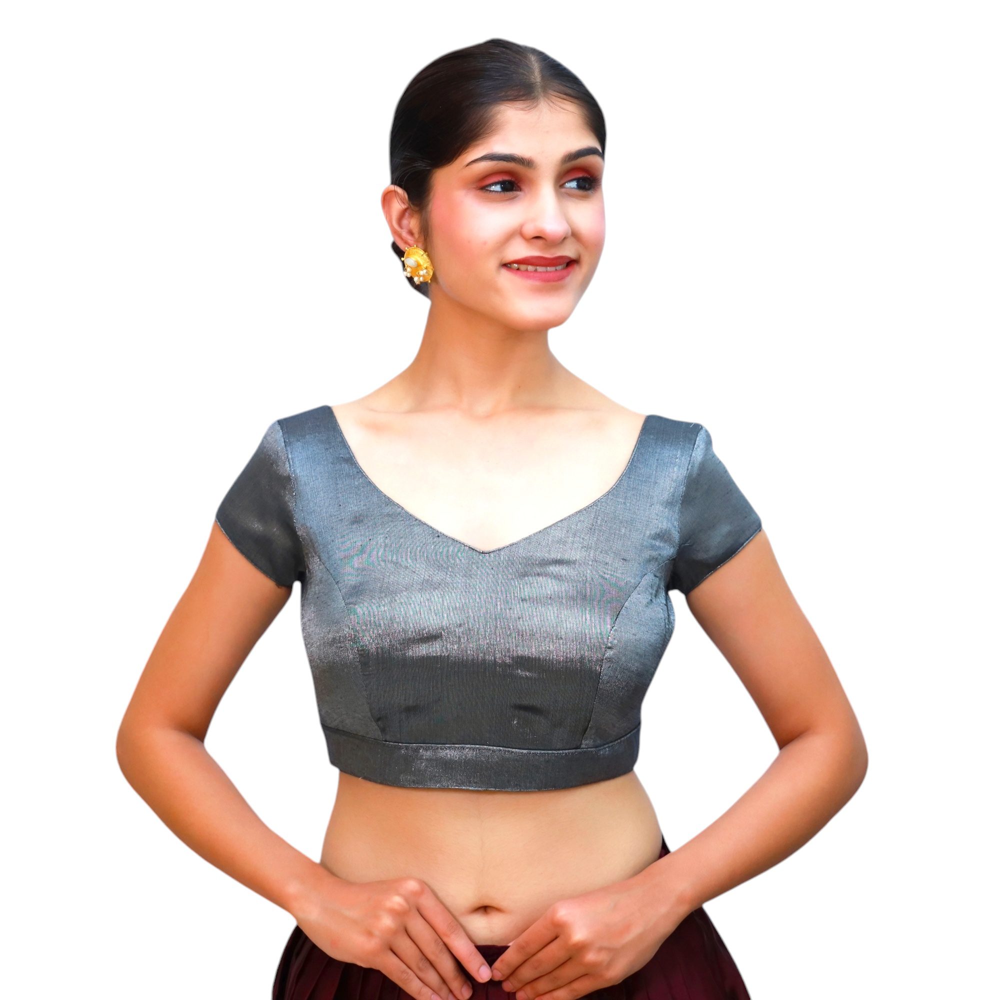 Make a sophisticated style statement with the Grey Sweetheart Neck Blouse for Women by India Blouseāa perfect blend of elegance, comfort, and modern charm. Expertly crafted from premium tissue fabric and lined with soft cotton, this blouse for women brings a luxurious sheen and all-day comfort to any saree ensemble.