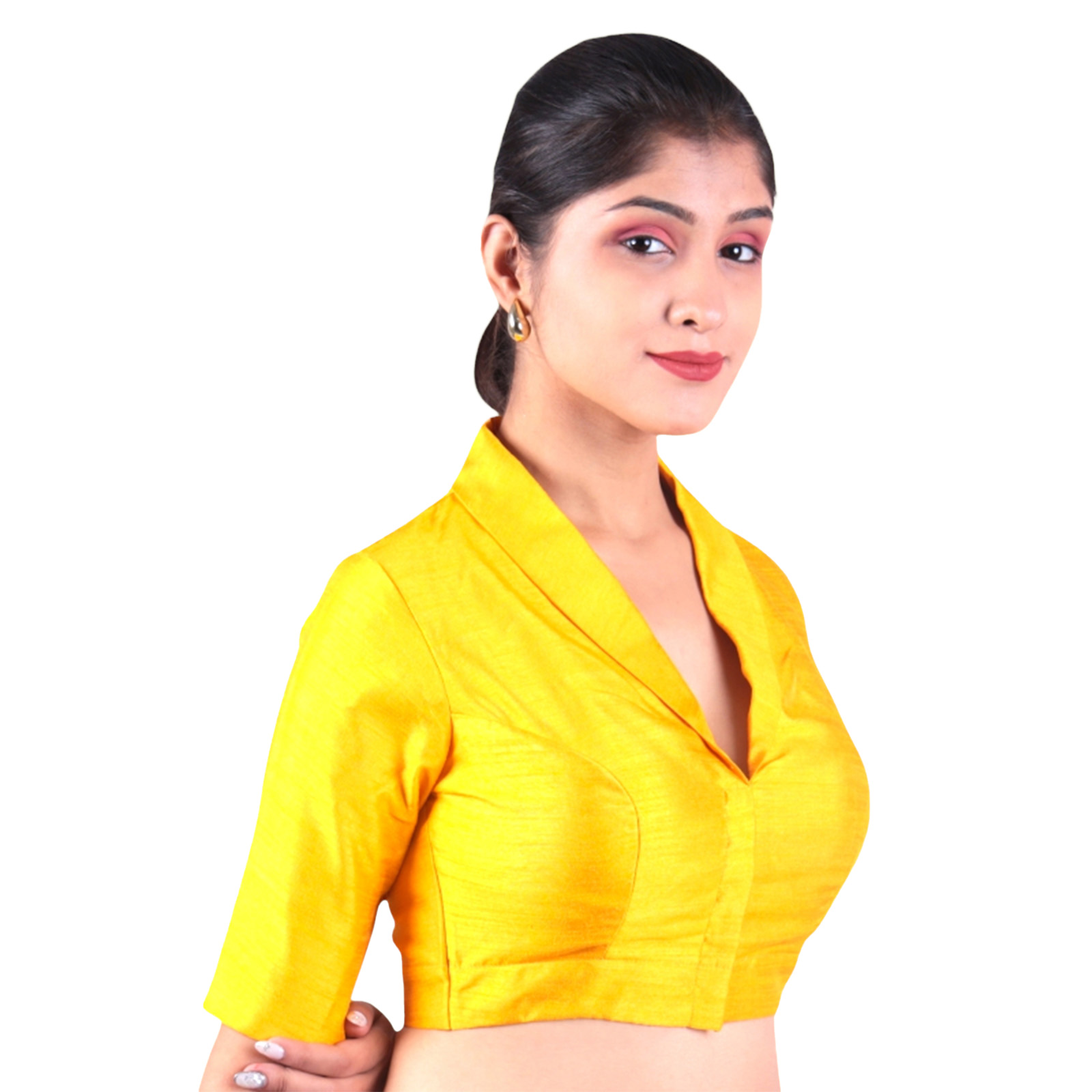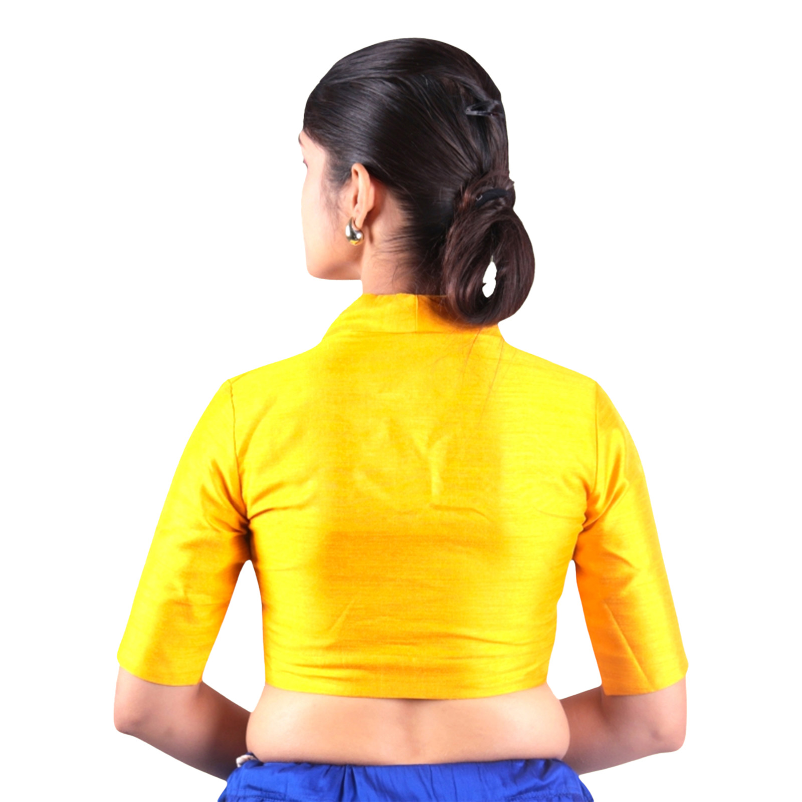Product Name: Sophisticated Mustard Collar Neck Blouse | Padded Silk Saree Blouse