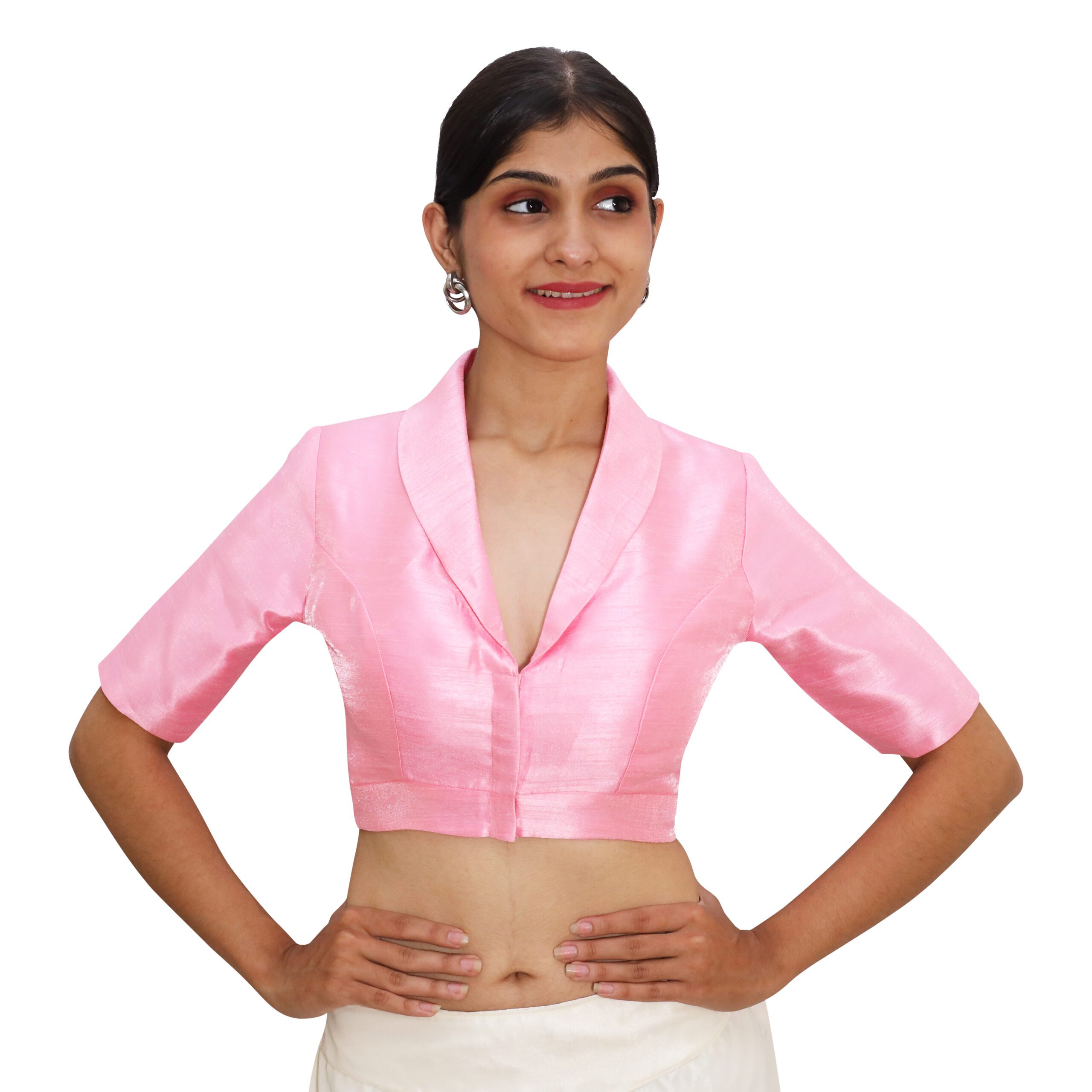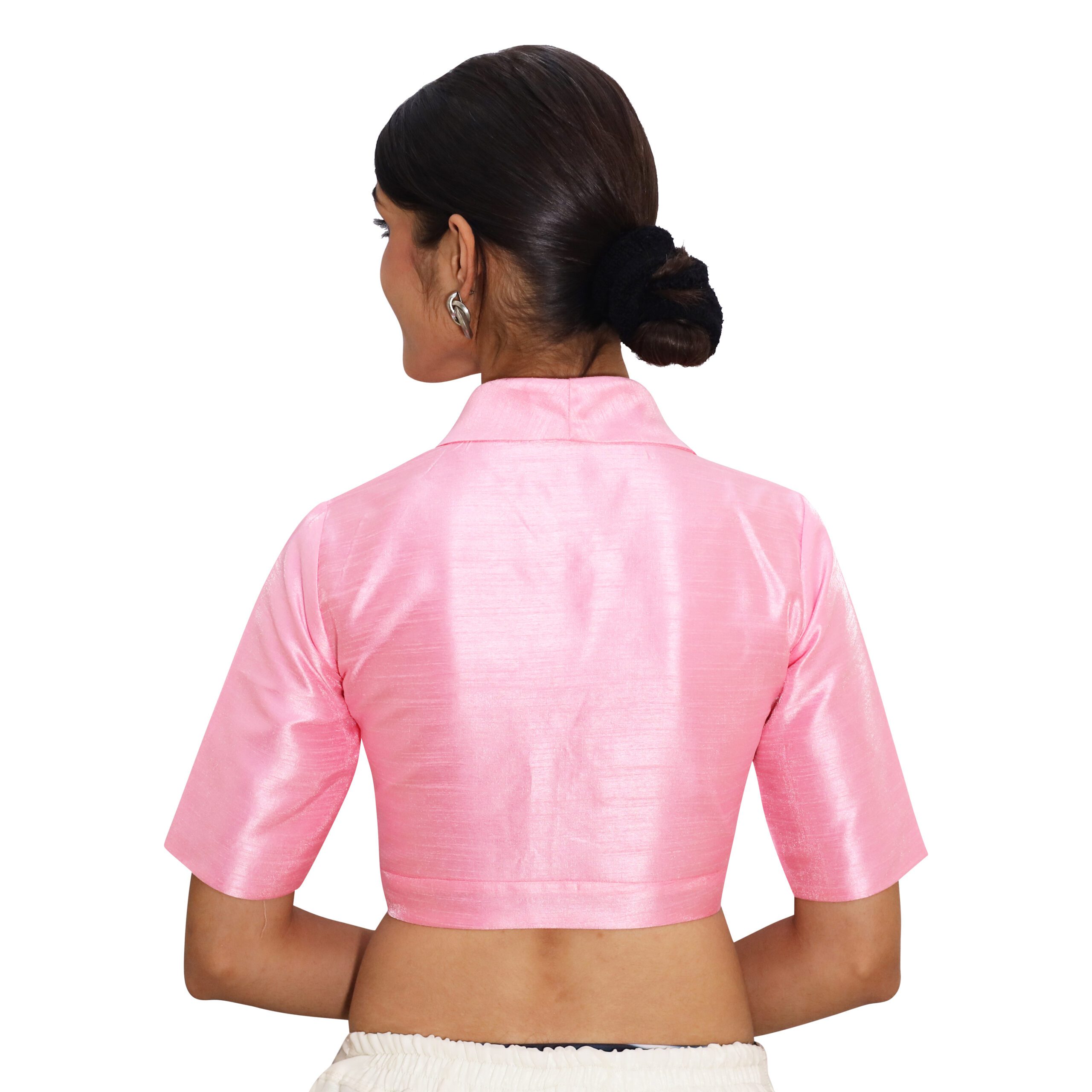 Timeless Pink Collar Neck Blouse | Padded Silk Saree Blouse