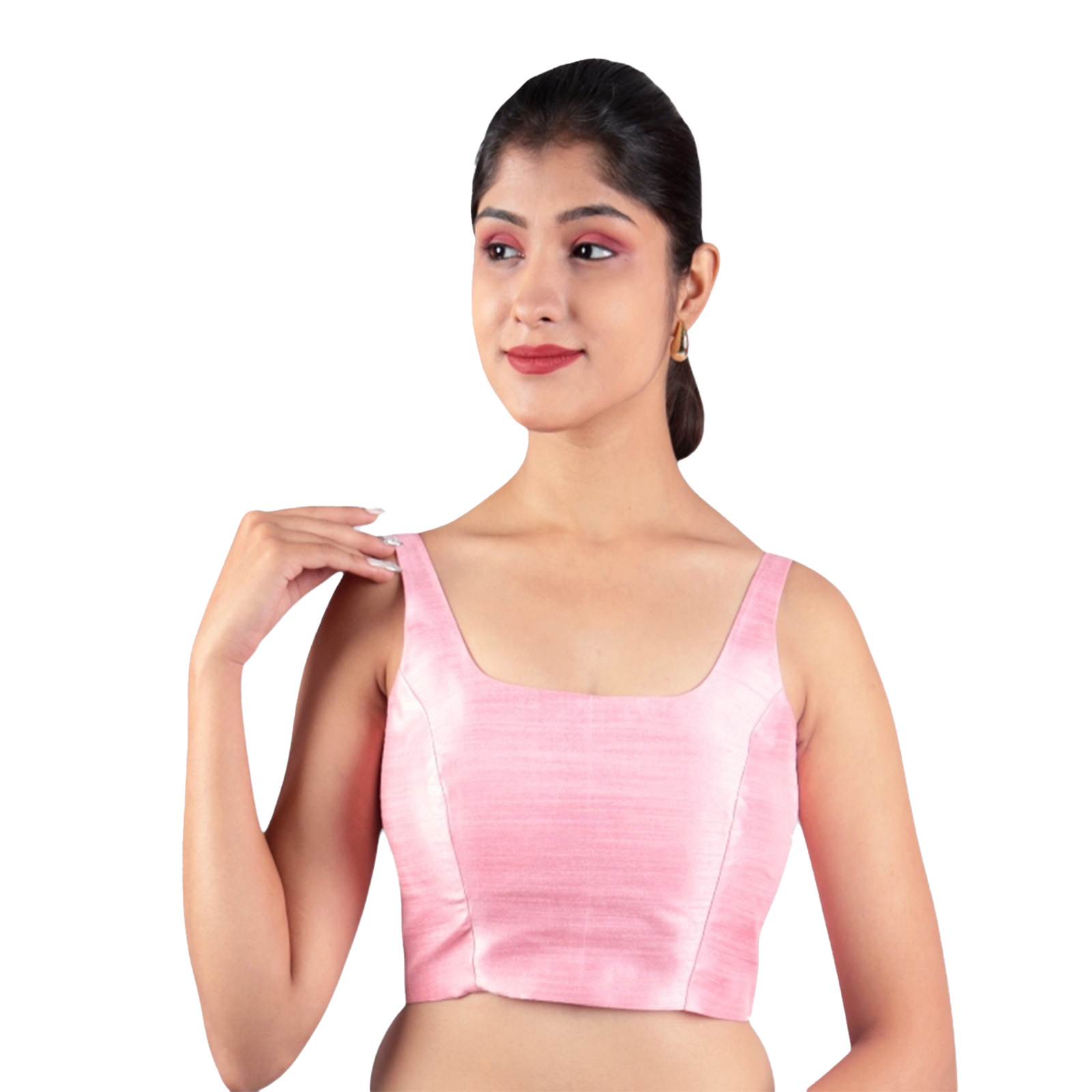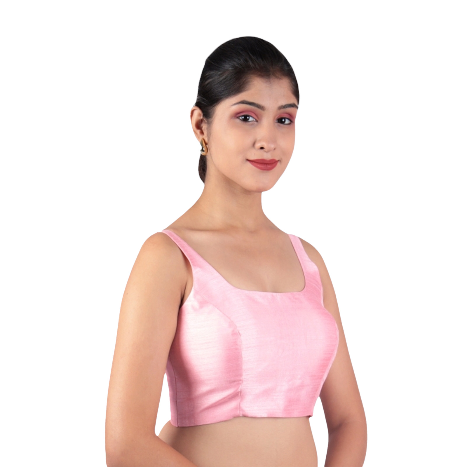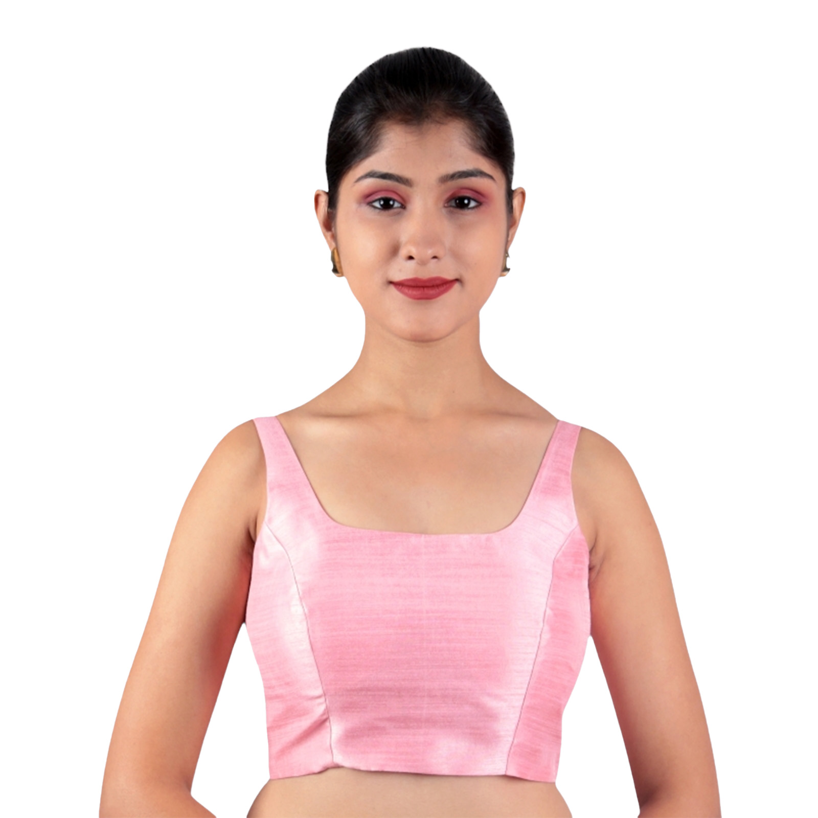Brighten your wardrobe with the pink silk sleeveless padded blouseĀ by India Blouse. Designed from premium Bangalori silk and lined with cotton, this pink silk sleeveless padded blouse ensures both comfort and elegance. Its padded finish offers a sleek fit, while the U-neckline and sleeveless design give it a stylish and modern appeal. The vibrant pink shade makes it a go-to choice for pairing with contrasting sarees, enhancing your festive and celebratory looks. Whether youāre attending a wedding, sangeet, party, or festival, this blouse guarantees effortless grace and versatility.
