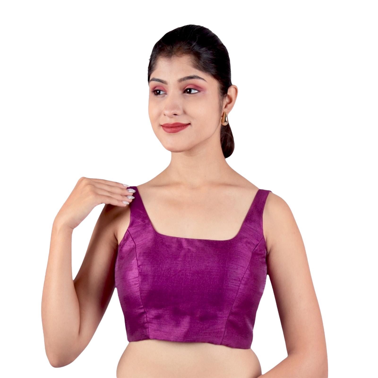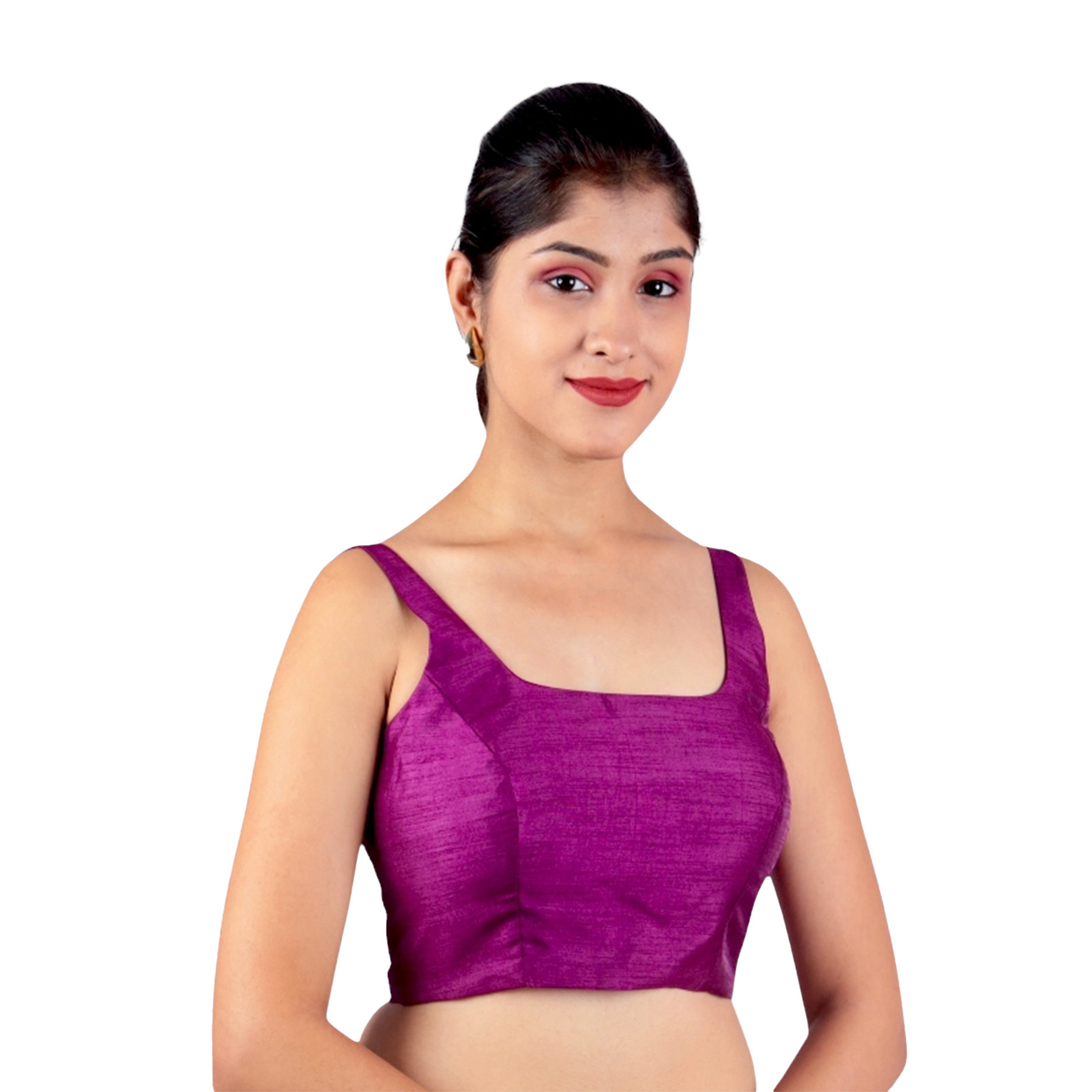 Elevate your ethnic style with the purple silk sleeveless padded blouse from India Blouse. Crafted fromĀ premium Bangalori silk, this purple silk sleeveless padded blouse offers a perfect blend of luxury and comfort. TheĀ padded design ensures a smooth and tailored fit, while theĀ U-neckline and sleeveless cut add a contemporary charm that pairs beautifully with both traditional and designer sarees.Ā The rich purple shade ofĀ this purple silk sleeveless padded blouseĀ adds a regal touch, making it an ideal choice for contrasting or embellished sarees. Whether you’re attending aĀ wedding function, festive occasion, evening reception, or party, this blouse ensures you stand out with elegance and confidence.
